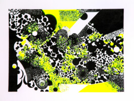 In this piece, Sternbauer has transformed the organic and chaotic forms of mycelium into a digitized motif, using a stark two-color palette of black and a vivid neon yellow to highlight the contrast between the natural and the synthetic. The use of neon color not only draws the eye but also suggests the vibrancy of life and the energy flow within the mycelium's intricate structure. This screen print is a visual metaphor for the juxtaposition of organic growth patterns and digital aesthetics, urging viewers to contemplate the harmony and tension between the natural world and technological interpretation.